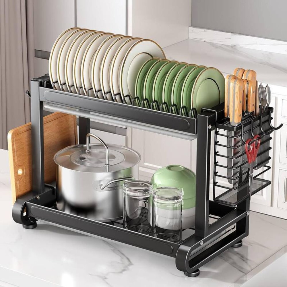 Escorredor de Louças 2 Andares Multifuncional de Bancada – Preto Fosco