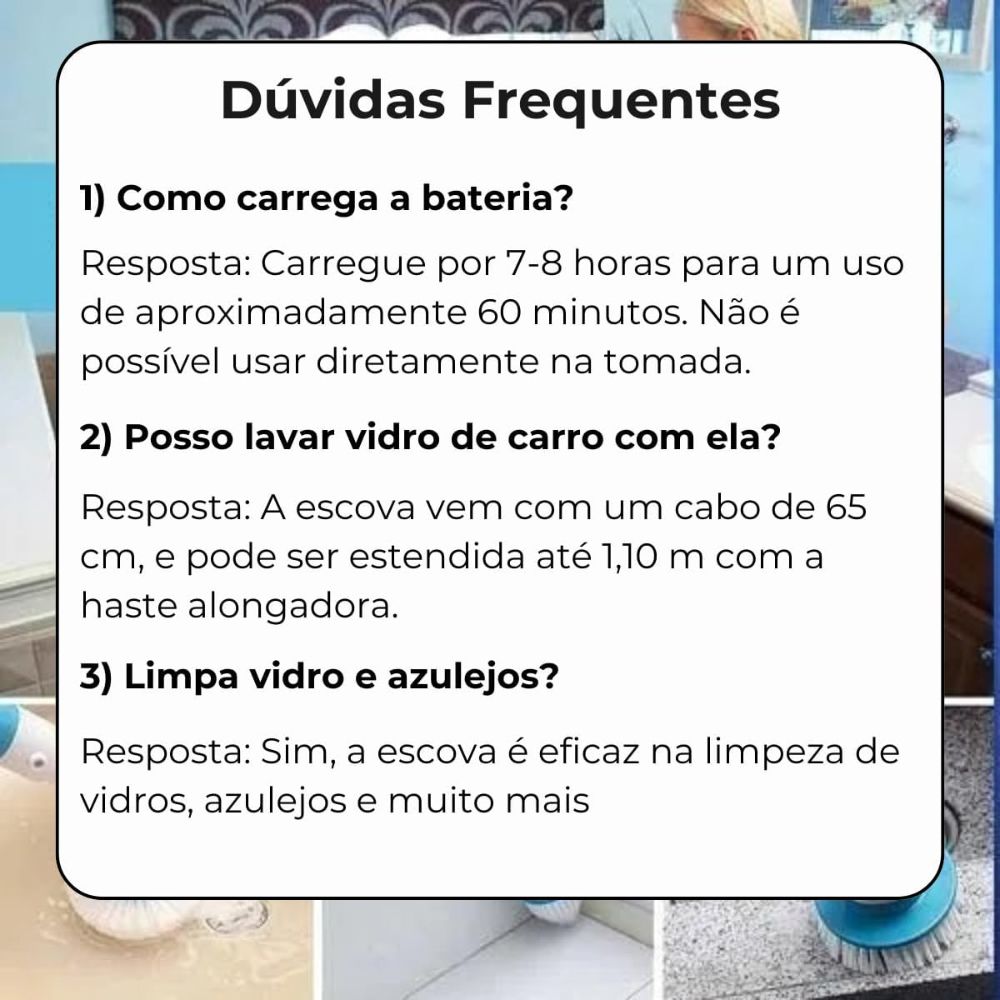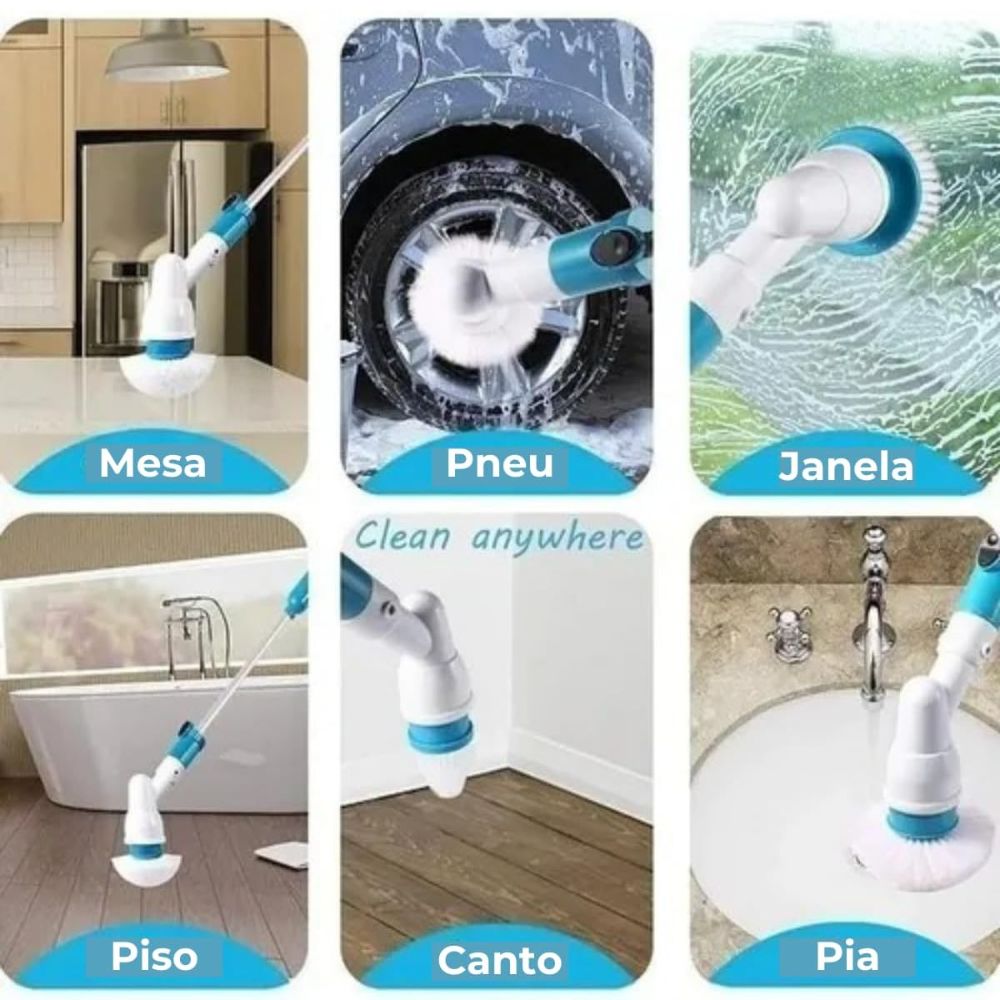 Transforme a limpeza de sua casa com nossa escova de limpeza recarregável e sem fio. Ideal para banheiros, chuveiros, argamassa e muito mais, esta escova oferece uma limpeza rápida e eficaz com um acabamento impecável.