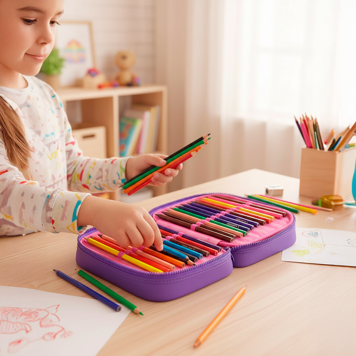Dê um toque de magia e modernidade ao seu material escolar! Com um efeito furta-cor que muda conforme a luz, ele não é apenas um estojo, é um acessório de destaque para o seu dia a dia nas aulas. – O modelo “Box” oferece profundidade que mantêm tudo no lugar, desde canetas favoritas até itens maiores como calculadoras ou colas. -Abertura suave e puxador personalizado para maior durabilidade. -Brilho intenso e moderno que reflete várias cores. Especificações Técnicas: – Material: Poliéster – Dimensões Aprox.: 16cm (LARGURA) x 22cM (COMPRIMENTO) – Capacidade: 20 lápis – 2 compartimentos – Fecho: Zíper Itens Inclusos: – 01x Estojo holográfico