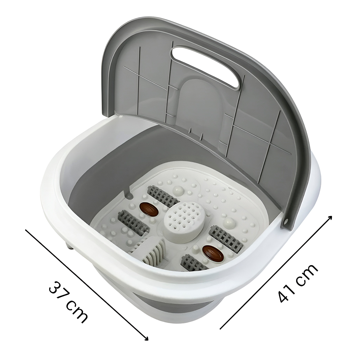Relaxe e renove suas energias! Projetado para proporcionar o máximo de relaxamento, ele combina hidromassagem, calor e infravermelho para aliviar o cansaço e melhorar a circulação. -Massagem com rolos: estimula a circulação e alivia tensões musculares, favorecendo o metabolismo. -A irradiação de luz vermelha complementa a massagem, ajudando a inibir bactérias e intensificar o efeito relaxante. -É o acessório perfeito para quem busca bem-estar ou para profissionais de pedicure que desejam oferecer um diferencial de luxo aos seus clientes. Especificações Técnicas: – Material: PE/Componentes elétricos – Dimensões Aprox.: 37cm (LARGURA) x 41cm (COMPRIMENTO) – Voltagem: 110V – 4 rolos massageadores – Frequência: 50Hz – Potência: 500W – Temperatura: até 50°C – Capacidade: 7L Itens Inclusos: – 01x Hidromassageador