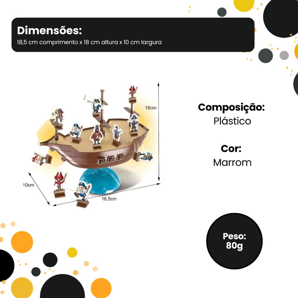 - Design divertido e colorido: com barco pirata que balança, mastros e bases de apoio para uma experiência realista.