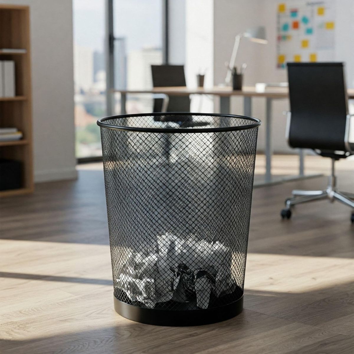 Fabricada em metal resistente, essa lixeira apresenta uma estrutura telada que permite a visualização do conteúdo, facilitando o controle, organização e limpeza.