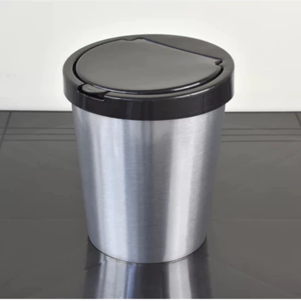 Renove a organização da sua casa ou escritório com a Lixeira Redonda 10 Litros com Tampa Click, um modelo moderno, funcional e perfeito para quem busca praticidade sem perder a estética. Com corpo em plástico resistente, revestido em adesivo Prata metalizado que imita aço inox, ela traz elegância para qualquer ambiente — da cozinha ao banheiro, lavanderia, quarto ou escritório.