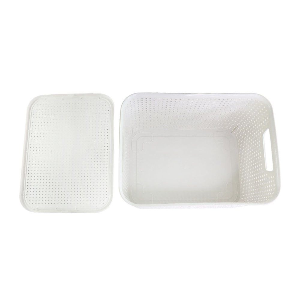 Fabricada em plástico resistente, possui textura de tramas, garantindo durabilidade e um visual sofisticado. Acompanha tampa firme, que protege os itens da poeira e mantém tudo bem armazenado. Além disso, é empilhável, permitindo otimizar o espaço e facilitar a organização em armários, closets, lavanderias, banheiros, quartos, cozinhas e escritórios.