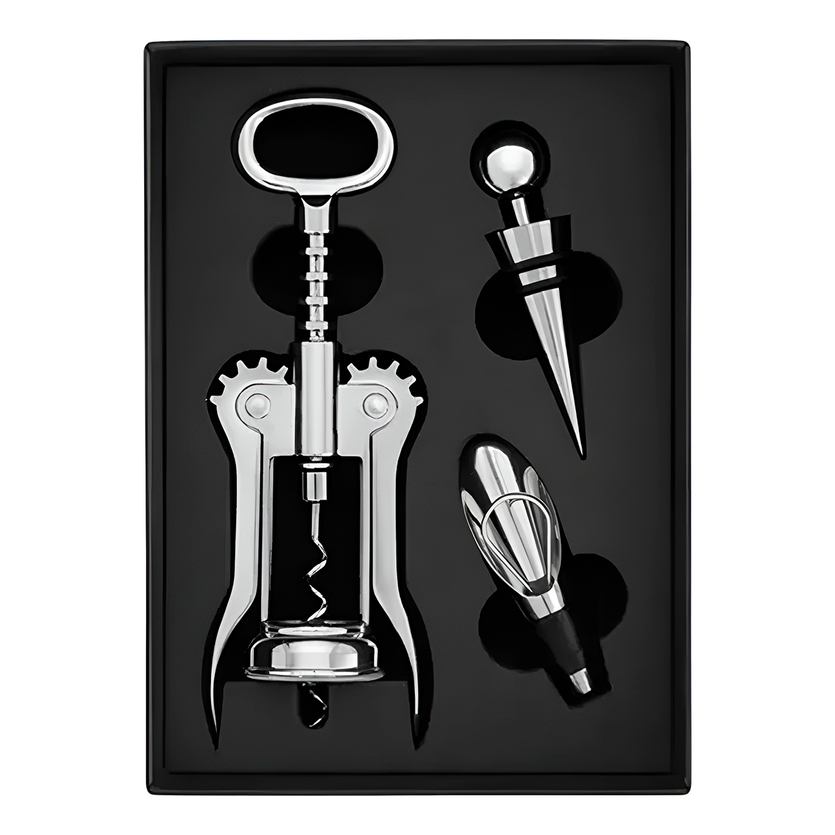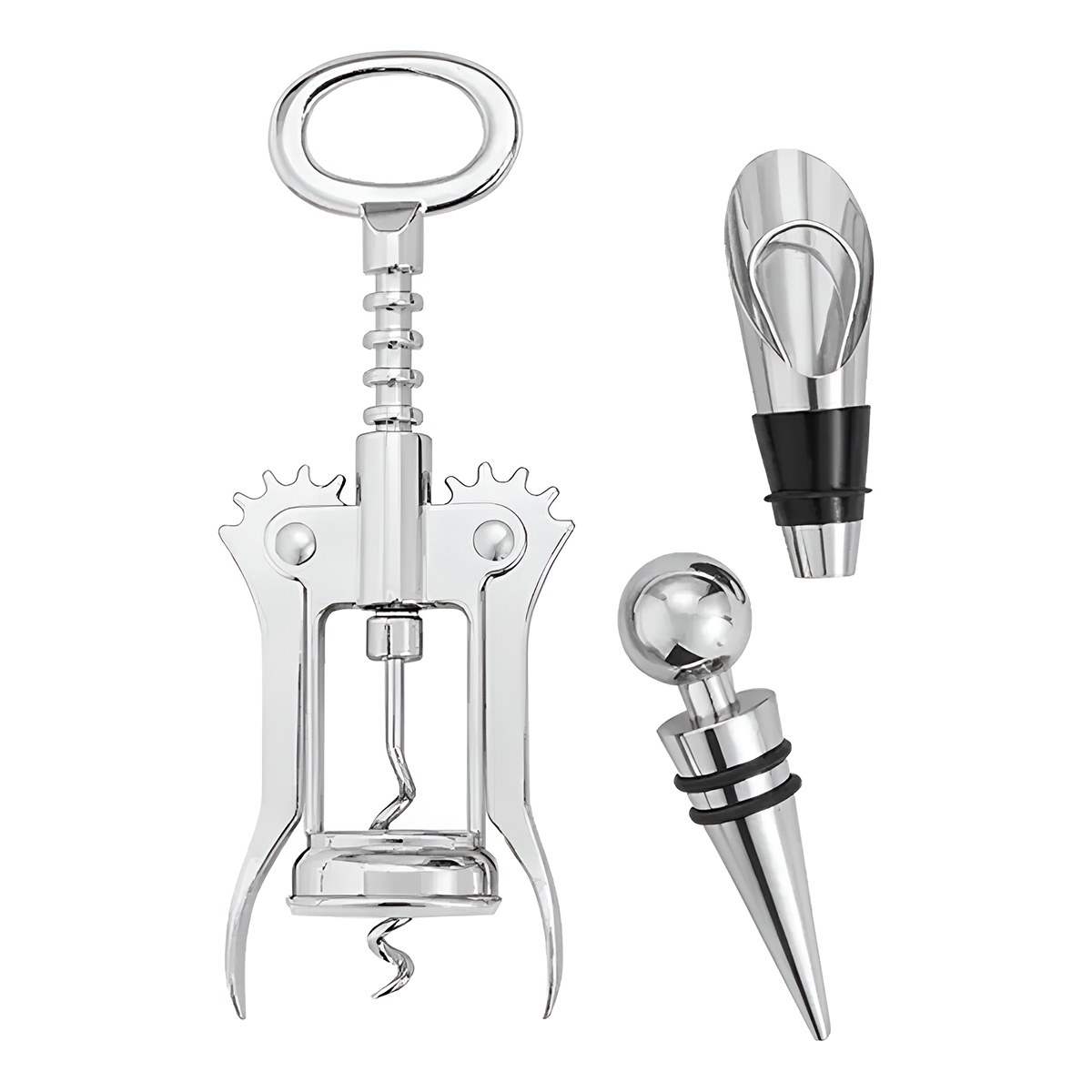 Kit 3 Peças Abridor Dosador Rolha Aço Inox Vinho Conjunto