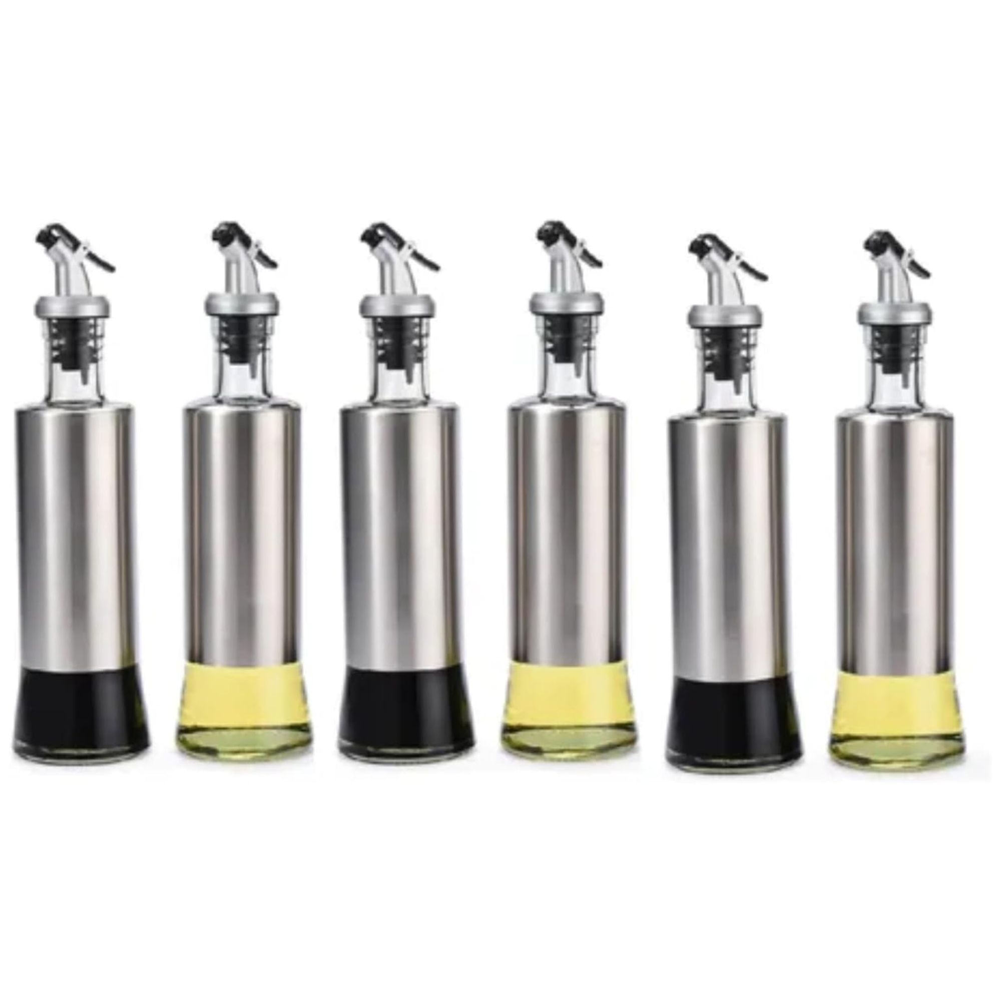 06x Galheteiro Azeite Vinagre 300 Ml Vidro Aço Inox Dosador