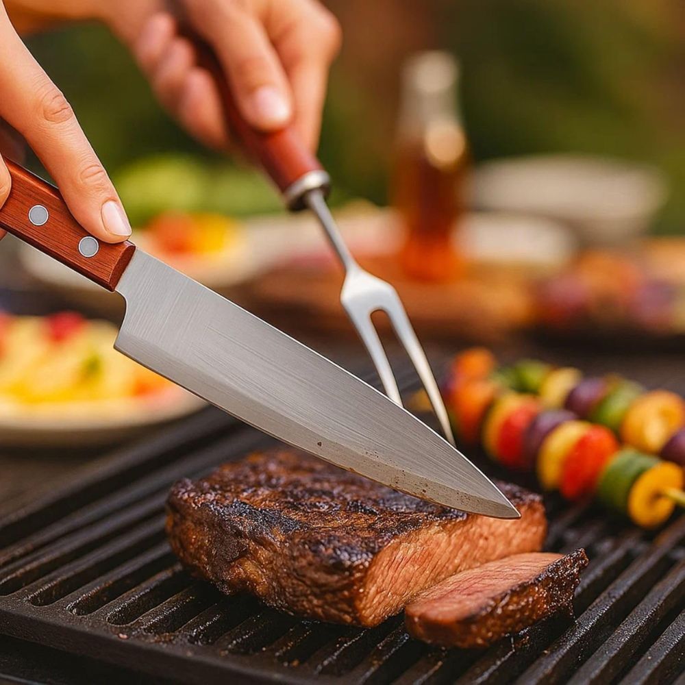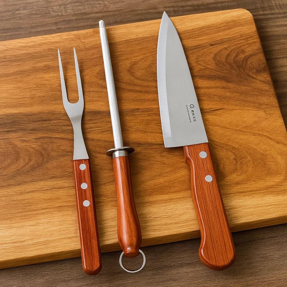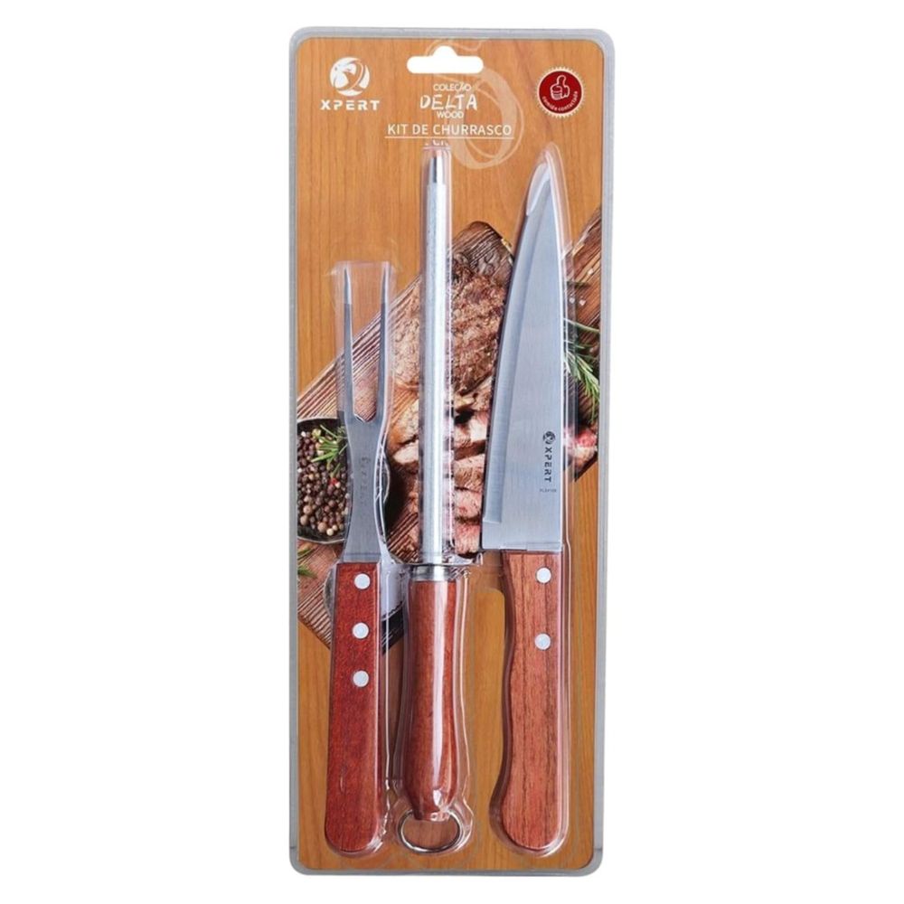 Kit 3 Peças Para Churrasco Com Cabo de Madeira – Aço Inox