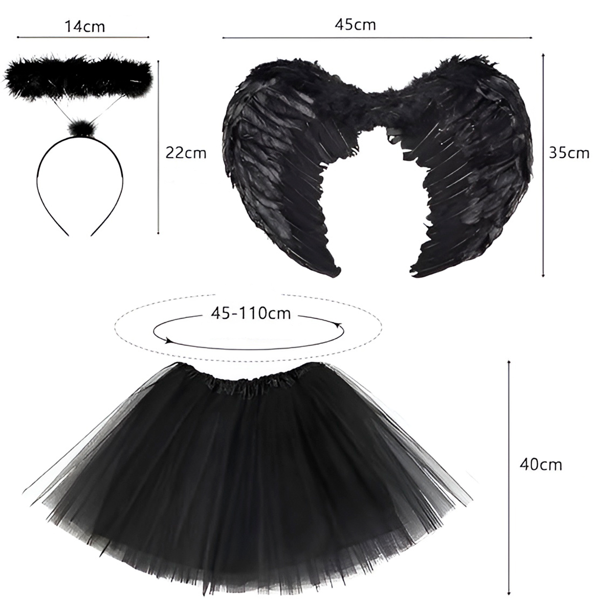 Prepare-se para brilhar com um toque de mistério! Aescolha ideal para quem quer um visual impactante, elegante e super prático. -Com estilo e elegância angelical. -O conjunto foi pensado para oferecer conforto e liberdade de movimento, permitindo que você aproveite a folia do início ao fim sem preocupações. -Ideal tanto para um visual de “Anjo Caído” quanto para um look gótico chic ou dark angel. Especificações Técnicas: – Material: Tule/plástico/arame – Cor: Preta – Asa: 35cm (ALTURA) x 45cm (COMPRIMENTO) – Saia: 40cm (COMPRIMENTO) x 45cm – 100cm (CINTURA) Itens Inclusos: – 01x Asa – 01x Saia de tule – 01x Tiara