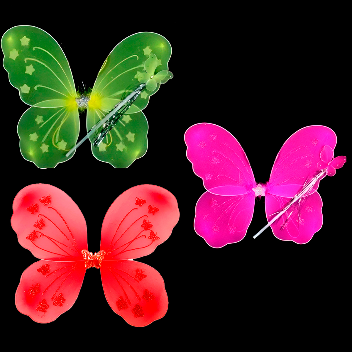 -Asas de borboleta: Com detalhes em glitter e cores vibrantes.
