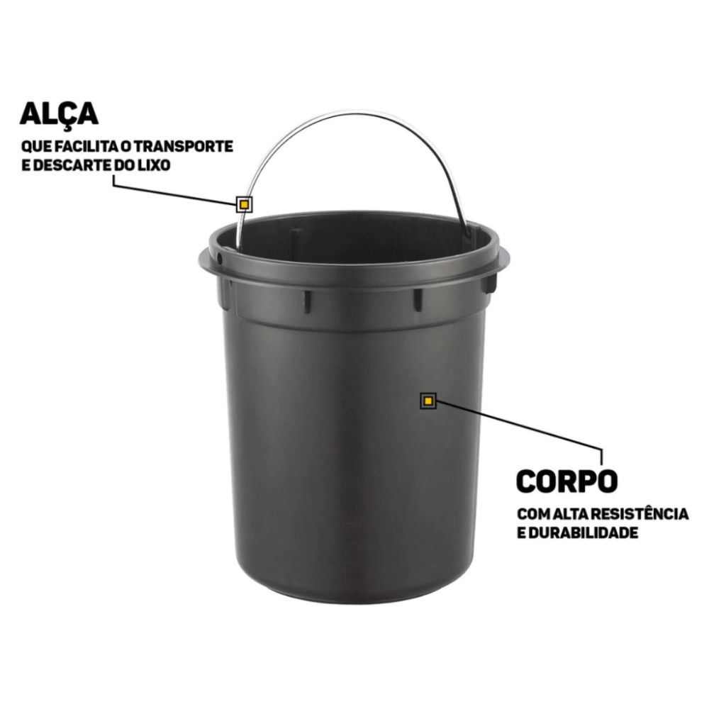 O sistema de abertura por pedal permite o descarte do lixo sem contato manual, garantindo mais higiene e praticidade. A tampa com fechamento suave ajuda a conter odores, mantendo o ambiente limpo e agradável.