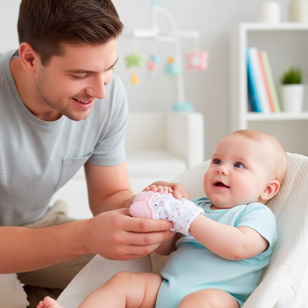O nascimento dos primeiros dentes é um momento delicado que pode causar desconforto e irritação nos pequenos. Pensando nisso, essa luva foi projetada para oferecer alívio imediato, proteção e muita diversão! -Alívio do desconforto das gengivas durante a dentição. -Correia de velcro ajustável que impossibilita a queda no chão. -É a solução higiênica e segura que toda mamãe e papai precisa! Especificações Técnicas: – Material: Tecido/Silicone alimentício – Dimensões Aprox.: 10cm (ALTURA) x 6,5cm (LARGURA) – Cor: ENVIADA ALEATORIAMENTE – Idade mínima recomendada: +04 meses – Fixação: Velcro Itens Inclusos: – 01x Luva