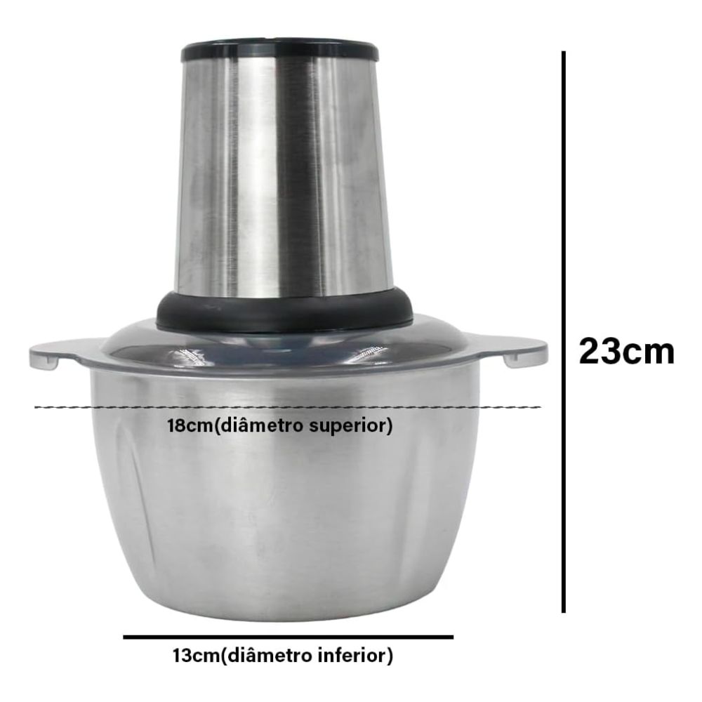 A bacia de corte com capacidade de 2 litros, fabricada em aço inoxidável 304, oferece maior durabilidade, resistência e higiene no preparo dos alimentos. Esse tamanho também permite triturar quantidades maiores de ingredientes de uma só vez, economizando tempo na cozinha.