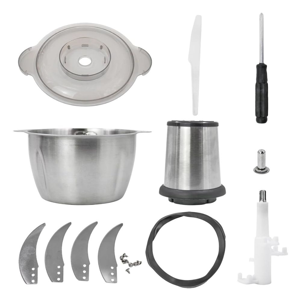 Triturador de Alimentos Elétrico 2L 850W em Aço Inox – Processador Profissional para Carne, Legumes e Temperos