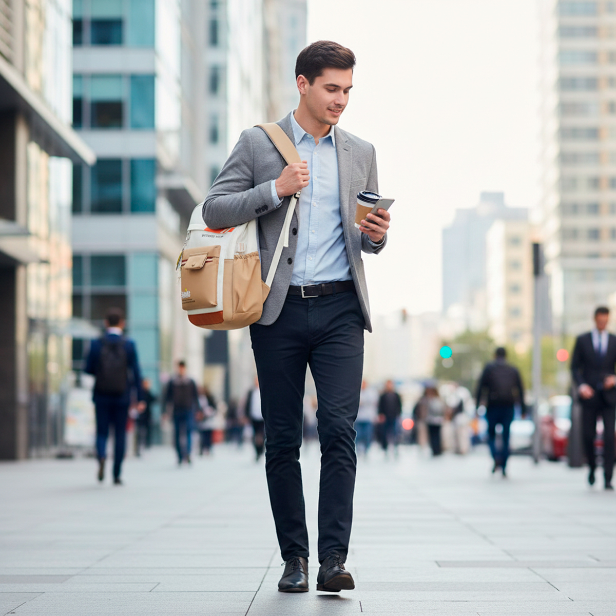 - Bolsos frontais de fácil acesso para celular, chaves, carteira e documentos