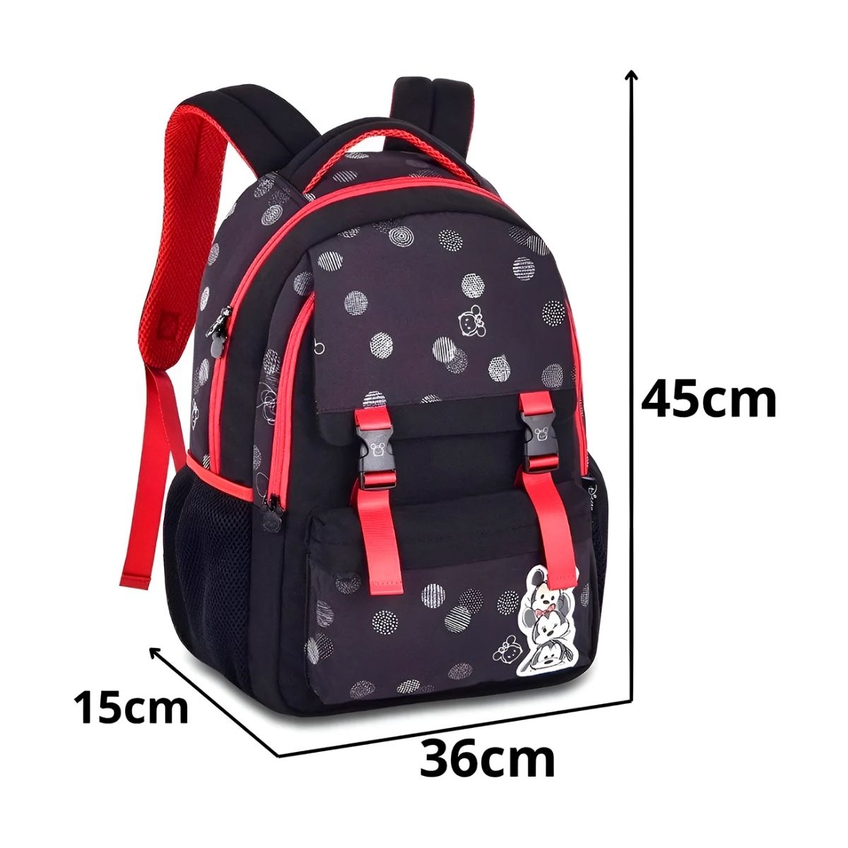 Produzida em poliéster resistente, oferece maior durabilidade mesmo com o uso intenso do dia a dia escolar. Seu tamanho grande (20 litros) garante espaço de sobra, enquanto os 2 bolsos frontais facilitam a organização de itens menores. Já os bolsos laterais em redinha são perfeitos para garrafa de água ou suco, trazendo ainda mais praticidade.