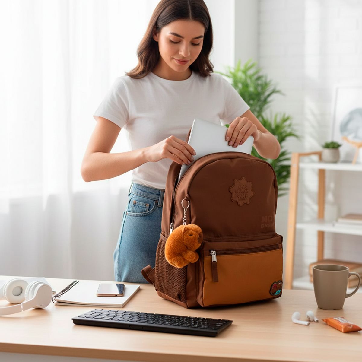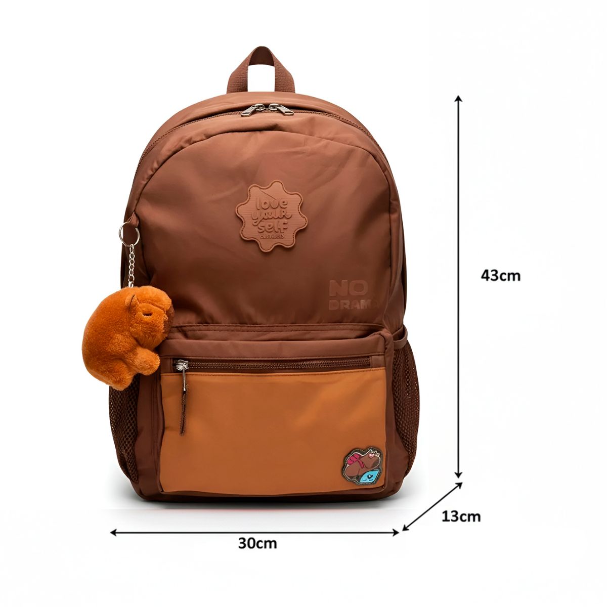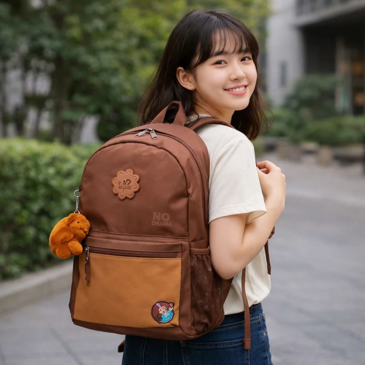 O charme extra fica por conta do chaveiro incluso, que adiciona um toque divertido e estiloso, tornando a mochila ainda mais fofa e desejada.