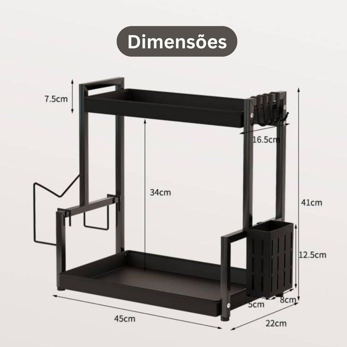 - 01 Organizador Multiuso de Metal com 2 Andares – Preto