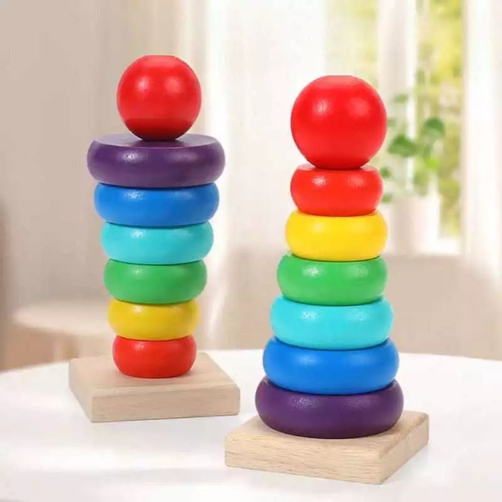 Com um design clássico, compacto e encantador, o brinquedo convida a criança a empilhar as argolas, explorando cores, tamanhos e formas de maneira intuitiva. As peças em tons suaves ajudam no reconhecimento visual, enquanto o encaixe no pino central estimula a coordenação motora fina, o raciocínio lógico e a concentração.