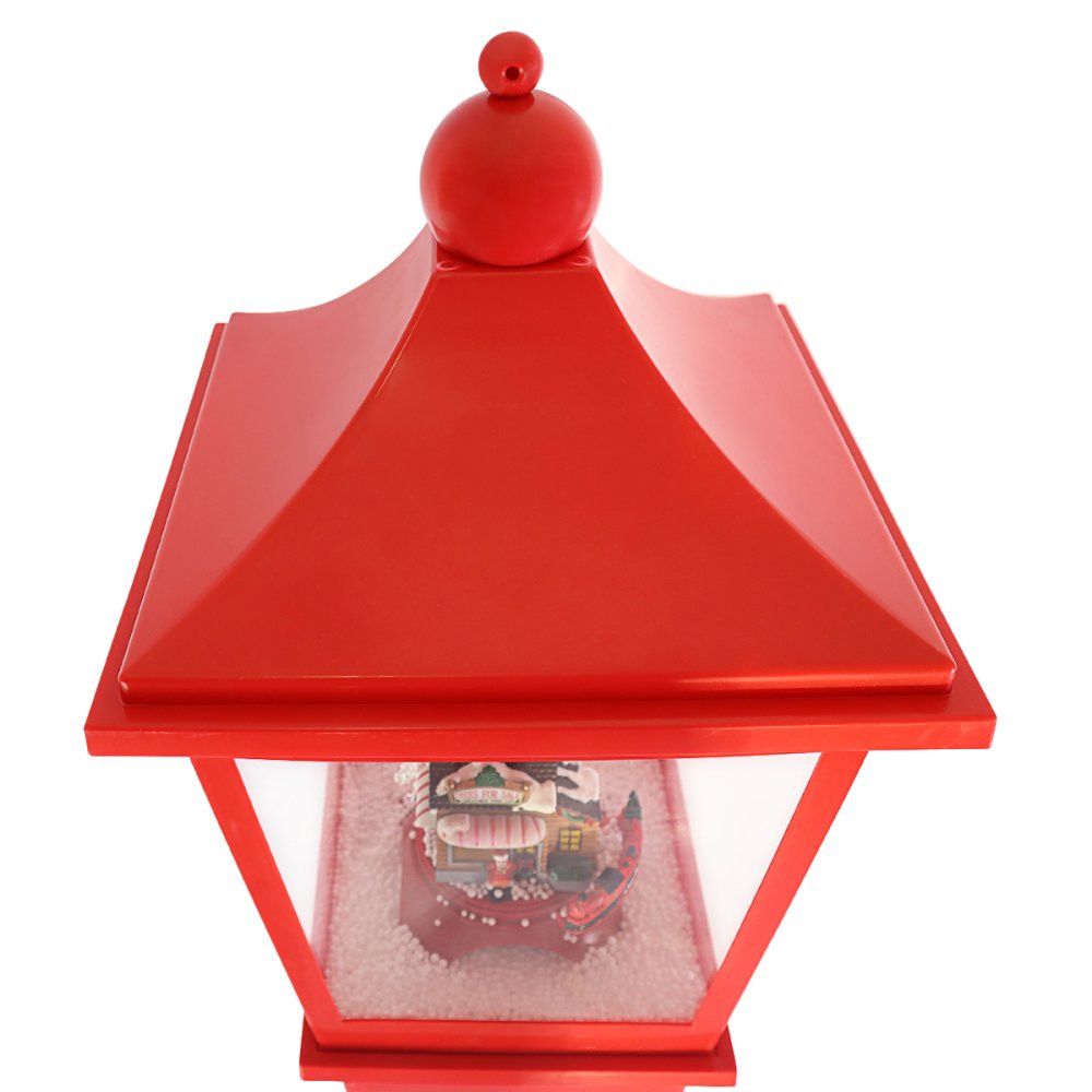 Sendo uma excelente peça para a entrada de ambientes, seja residencial ou comercial, o poste conta com um design elegante e festivo, uma criança em seu centro, ao redor um trenzinho que ficar circulando a casinha no ritmo natalino, uma excelente iluminação LED, ótima para o ambiente, garantindo um clima natalino perfeito para decorar sua casa. Conta também com a função de neve artificial, em que ao ligar cai suavemente de forma continua ao seu redor, criando um cenário de inverno encantador e único, encantando seus convidados e agregando ainda mais o clima natalino. Além disso o poste também da a possibilidade de ouvir 3 famosas canções natalinas sem interrupções. Com uma variedade de músicas natalinas em loop, este dispositivo garante que a atmosfera festiva permaneça vibrante e alegre durante toda a celebração.