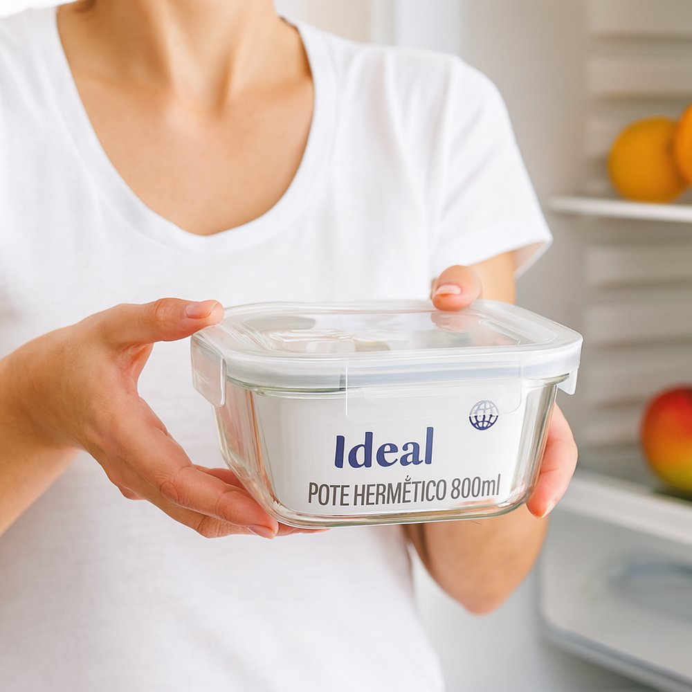 Ideal para uso diário na cozinha, desenvolvido para garantir praticidade, frescor e organização na hora de armazenar alimentos. Compacto e funcional, é perfeito para guardar porções menores, marmitas, snacks, frutas picadas, sobremesas, condimentos e sobras das refeições, mantendo tudo bem conservado. Produzido em vidro resistente, não absorve odores, cores ou sabores, além de facilitar a limpeza e oferecer maior durabilidade. Sua tampa com travas laterais reforçadas e vedação em silicone cria um fechamento totalmente hermético, impedindo vazamentos e preservando a qualidade dos alimentos por muito mais tempo. Versátil e seguro, o pote pode ser levado ao freezer e ao micro-ondas (sem a tampa), proporcionando ainda mais praticidade no dia a dia. O formato quadrado otimiza o espaço dentro da geladeira e dos armários, permitindo melhor empilhamento e organização. Robusto, higiênico e fácil de usar, é o acessório ideal para quem busca eficiência e conservação superior em cada preparo.