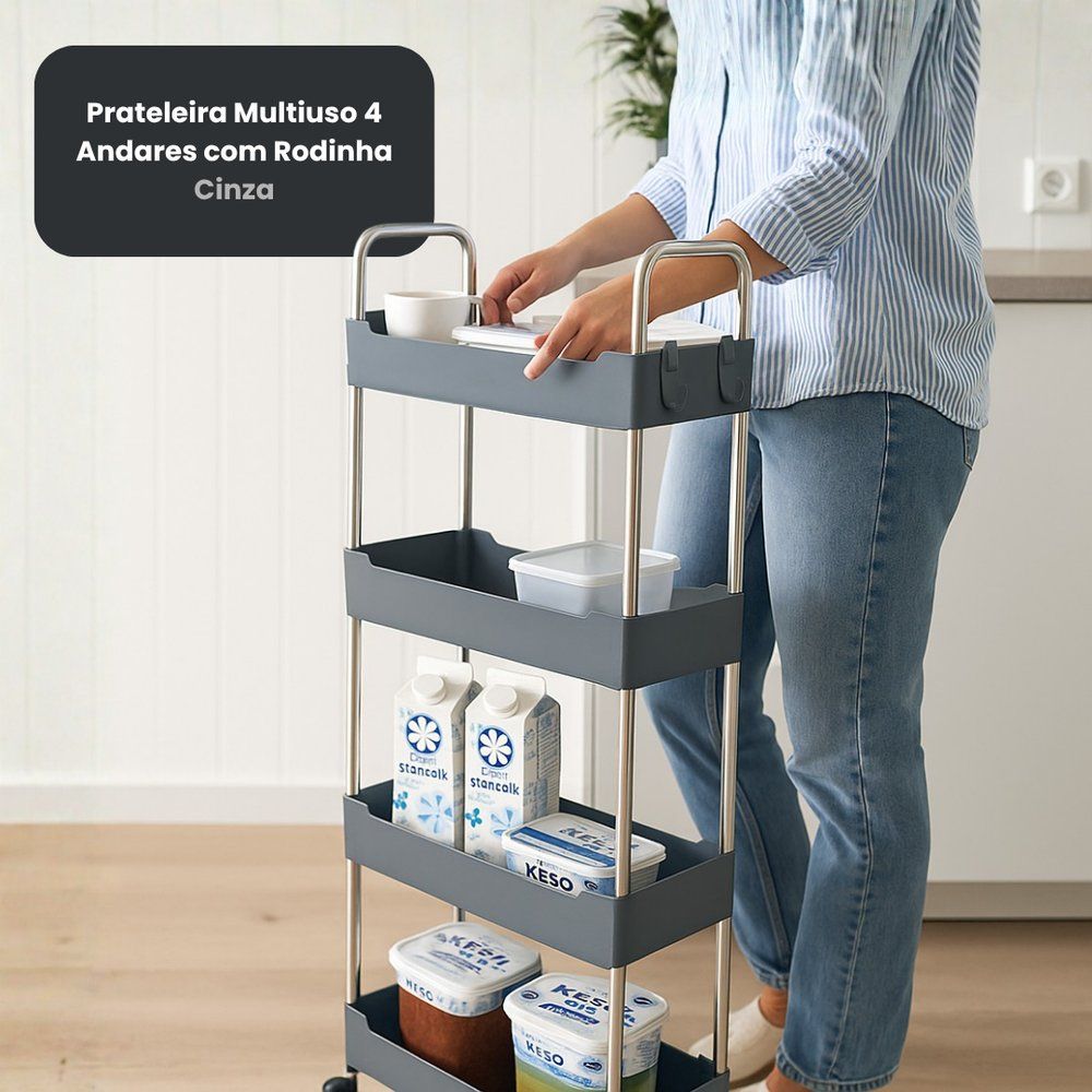 Transforme qualquer ambiente da sua casa com a Prateleira Multiuso 4 Andares com Rodinhas — a solução prática, resistente e moderna para quem busca mais organização, funcionalidade e mobilidade no dia a dia.