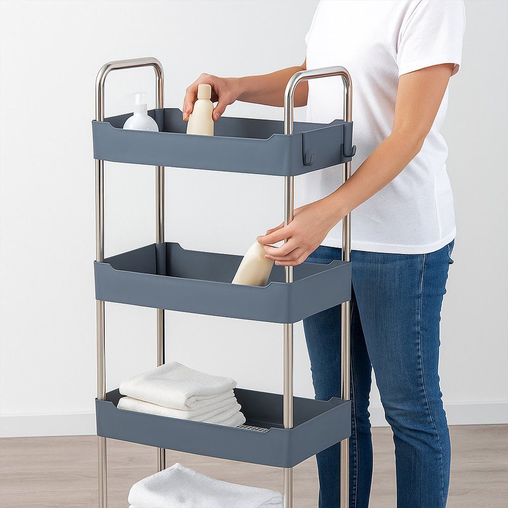 Fabricada em Plástico PP de alta resistência, com hastes e alças em aço inox, essa prateleira oferece durabilidade superior e suporta o uso diário sem deformar ou perder estabilidade. As rodinhas com giro 360° garantem total mobilidade, permitindo deslocar o carrinho com facilidade, mesmo carregado.