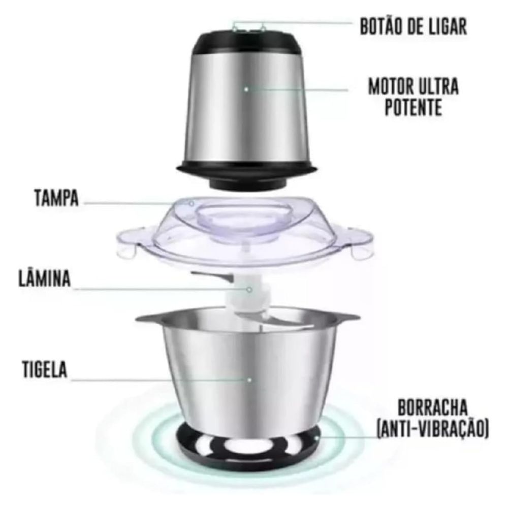 Com sua capacidade de 3 litros em inox durável, você consegue preparar desde pequenas porções até grandes receitas em segundos – perfeito para fazer almôndegas, tortas de carne, molhos, sopas e muito mais. A base emborrachada garante estabilidade, enquanto o design moderno em inox traz resistência e fácil limpeza.