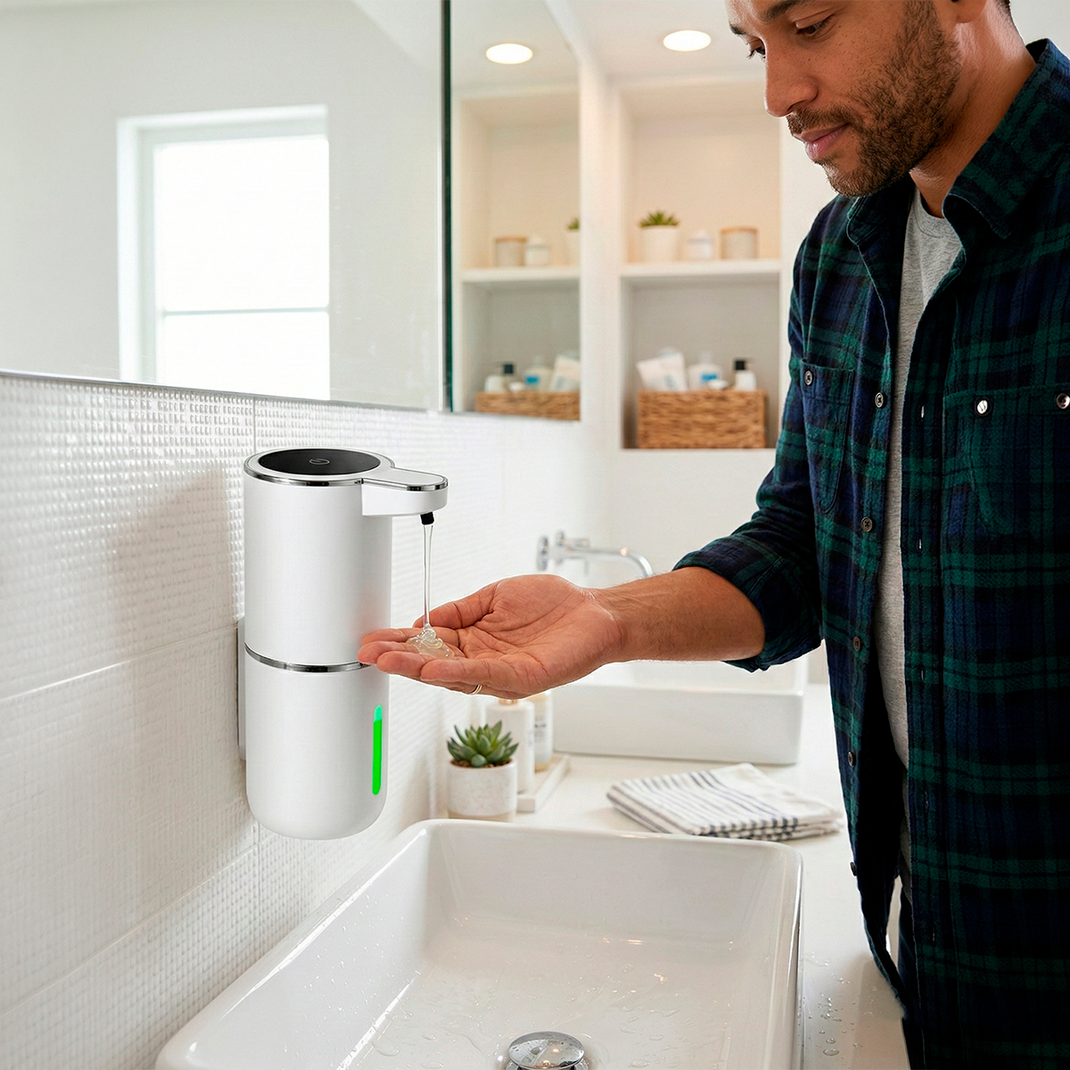 Leve mais higiene, praticidade e modernidade para o seu banheiro, cozinha ou ambiente de trabalho com o dispenser automático de sabonete com sensor. Desenvolvido para proporcionar uma experiência mais limpa e segura, ele permite lavar as mãos sem tocar no equipamento, reduzindo a contaminação cruzada por germes e bactérias.