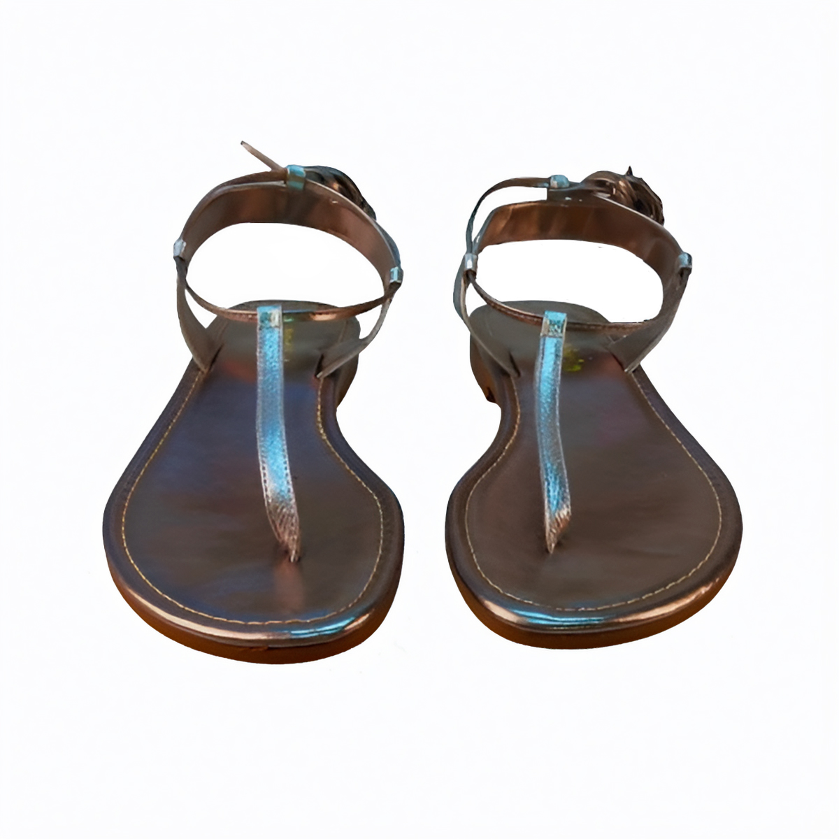 Sandália Rasteira de Couro Helena Tiras Confortável Prata Tamanho:38