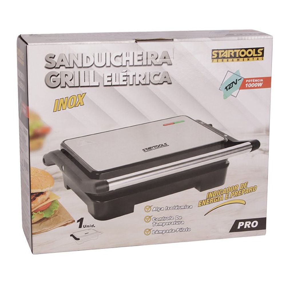 - 01 Sanduicheira Elétrica Grill 1000W 127V – Inox