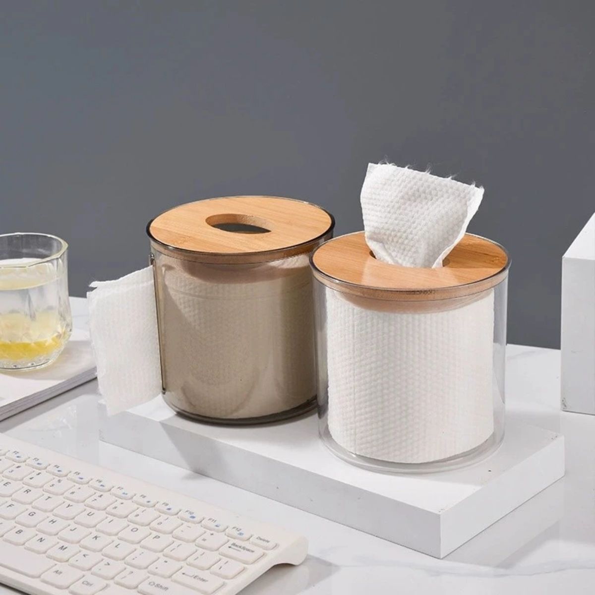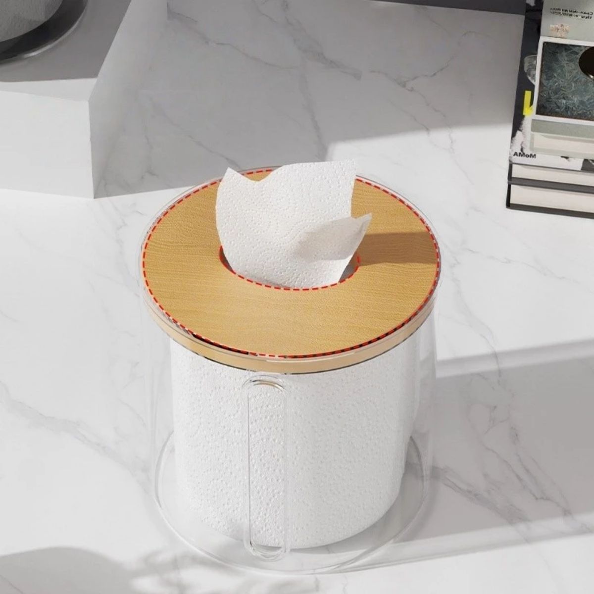 Suporte de Papel Higiênico Luxo Transparente com Tampa de Bambu Elegante