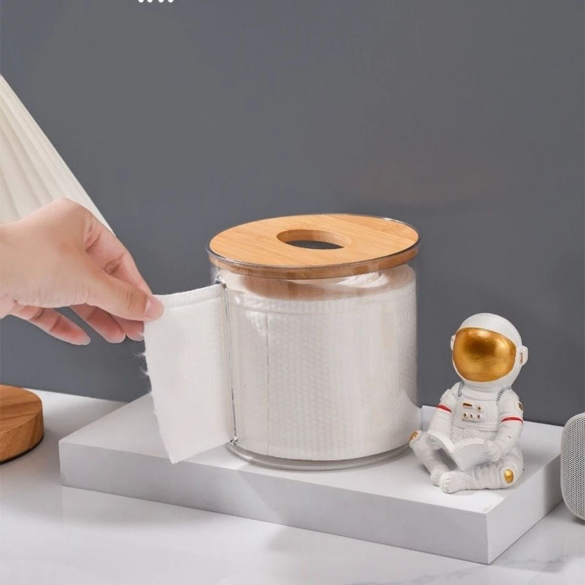 Porta Papel Higiênico Luxo Transparente com Tampa de Bambu