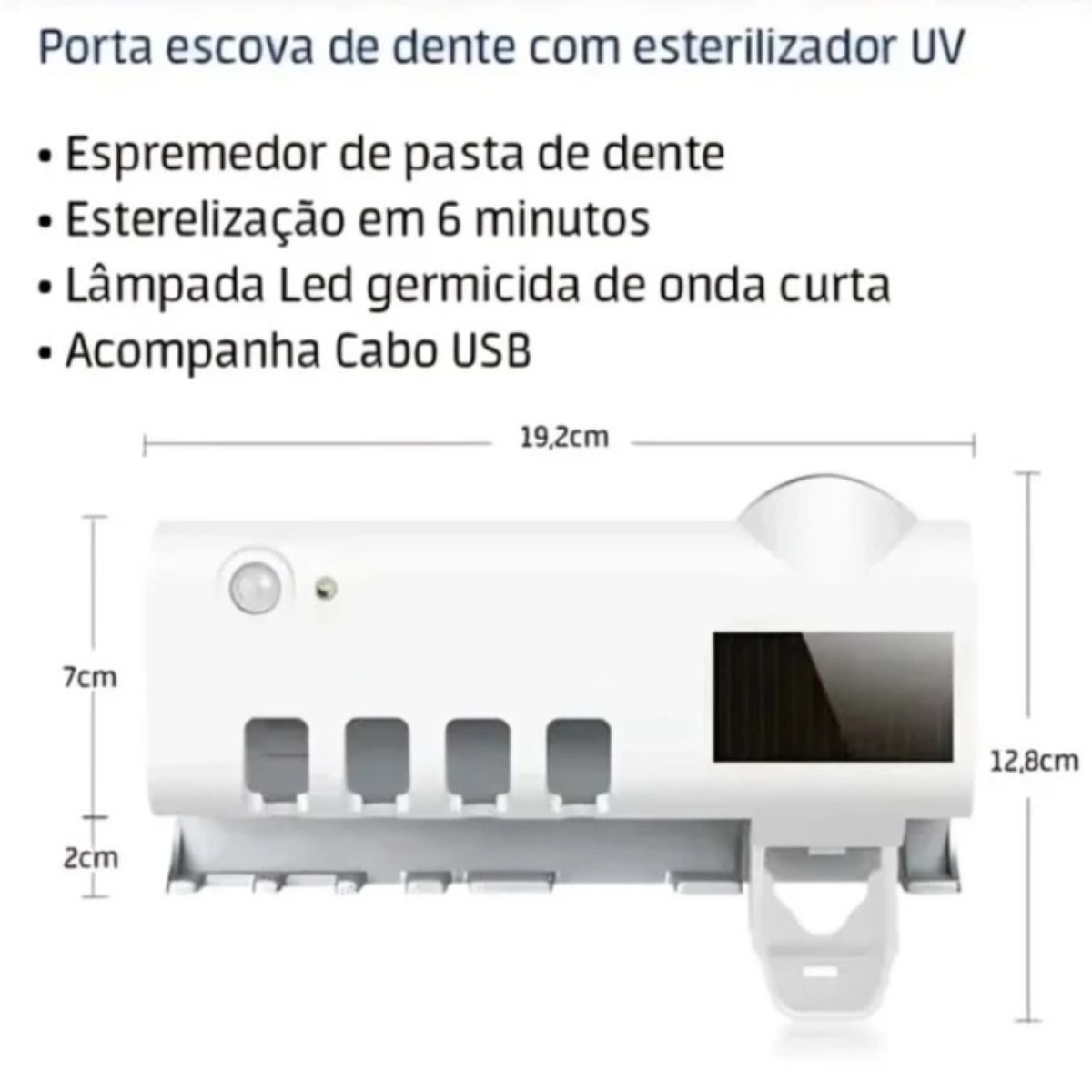 Porta Escova de Dentes com Dispenser Automático e Esterilizador UV Solar
