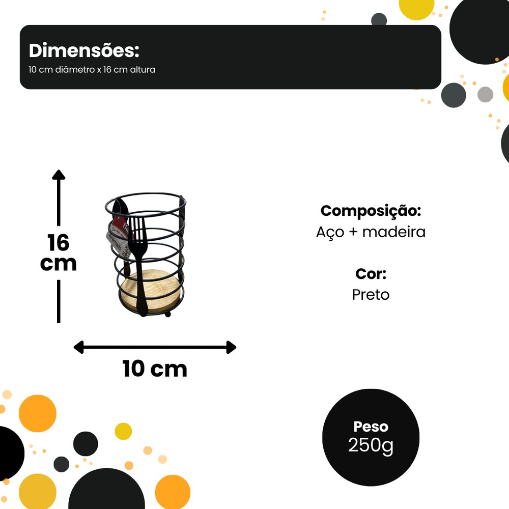- Contém: 01 Suporte Decorado para Talheres 16 cm
