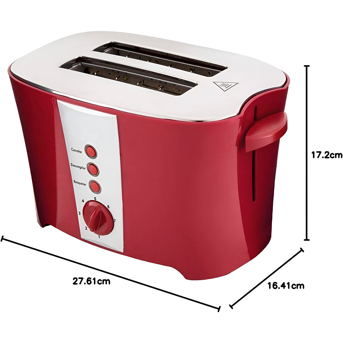 Torradeira Elétrica 2 Fatias 800W – 7 Níveis de Tostagem, 3 Funções e Design Compacto em Vermelho