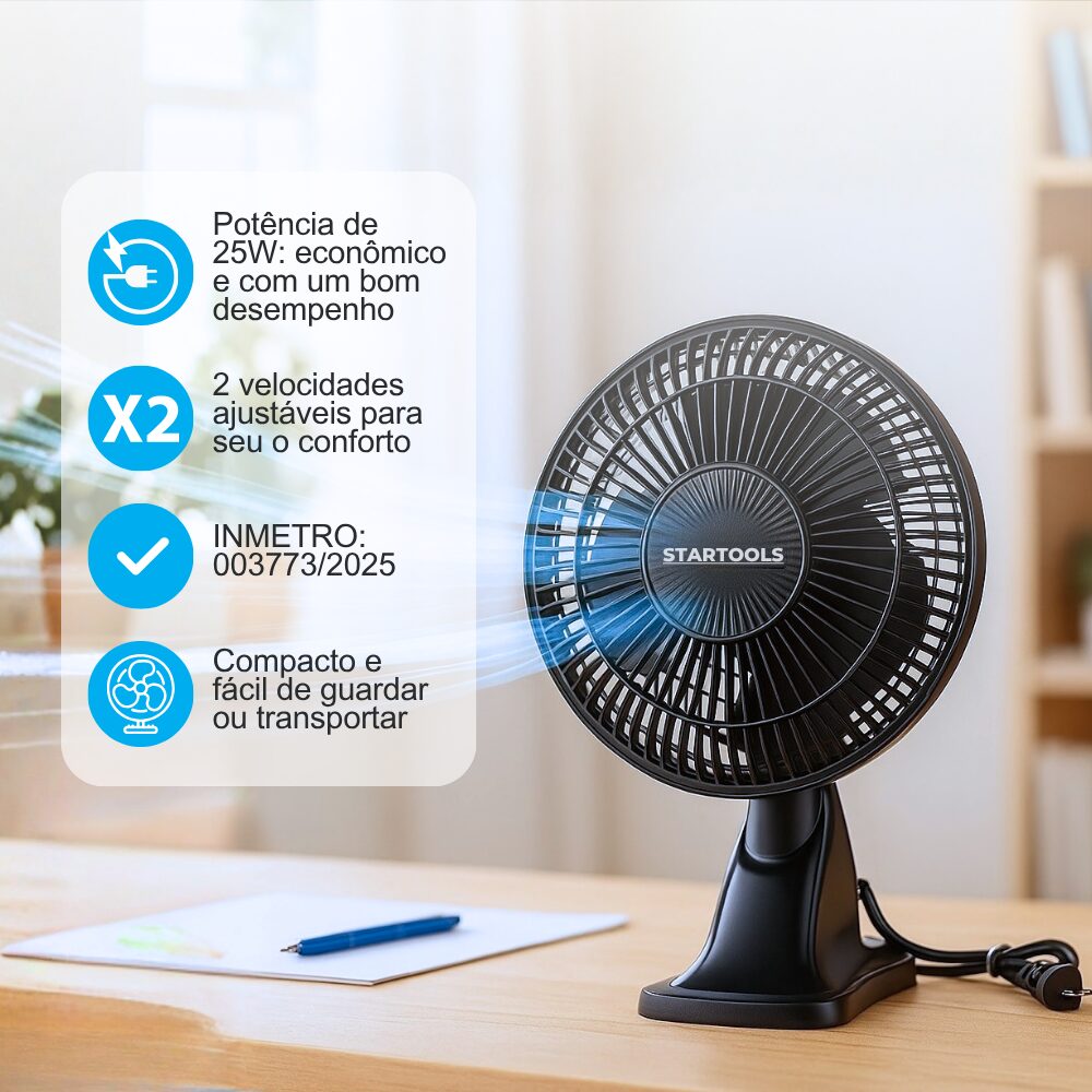 Ventilador de Mesa Portátil 127V com Oscilação – Sortido